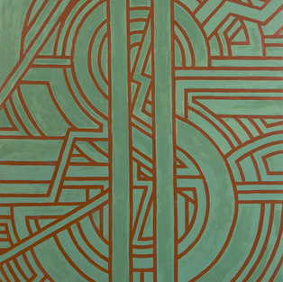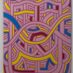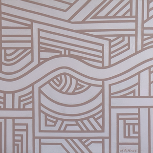 Michael Hines’ abstract paintings engage a lineage of modern abstraction shaped by the geometric discipline of William T. Williams, the architectural clarity of Piet Mondrian, and the immersive legacy of color-field painting. Drawing from these traditions, Hines constructs a visual language in which contours and margins operate as defining structural elements. These margins function as fixed boundaries, yet they remain active and charged, shaping the composition while registering movement, tension, and possibility within the painted field. Hines’ linear paintings explore memory and nostalgia through the dynamic interplay of contour lines that extend to the edges of the canvas. Continuous strokes generate a sense of momentum and openness, resisting visual closure and encouraging sustained engagement. Within these bold compositions, meaning is not immediately legible but gradually revealed through repetition, interruption, and accumulation. Hidden narratives and symbolic resonances emerge in ways that recall the visual logic of logos and other defined brands of modernity, systems that rely on reduction, clarity, and recognition while concealing complexity beneath their surfaces. The influence of these modern visual systems is not merely aesthetic but conceptual. Grids, divisions, and regulated spaces structure how the viewer navigates the work, echoing the organizational frameworks that shape contemporary life. Hines reconfigures these systems, allowing them to coexist with personal and collective experience rather than imposing a singular order. In doing so, he transforms formal restraint into a site of inquiry and tension. Within this framework, margins also carry social and historical weight, indexing the Black American experience of displacement shaped by histories of marginalization, discrimination, and segregation. Spatial divisions simultaneously obscure and reveal, partially concealing underlying chromatic fields while defining zones of proximity and relation. Background colors retain their presence and force even as foreground elements alter perception, asserting continuity beneath imposed structures. Across these layered compositions, color operates as both material and metaphor. Identity is articulated not as a fixed condition but as an evolving process shaped by interaction, pressure, and persistence. Hines’ abstraction positions the canvas as a site where modernist order is reexamined and redirected, holding lived experience within formal systems and releasing it through color, line, and space.